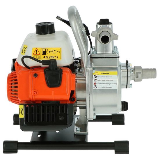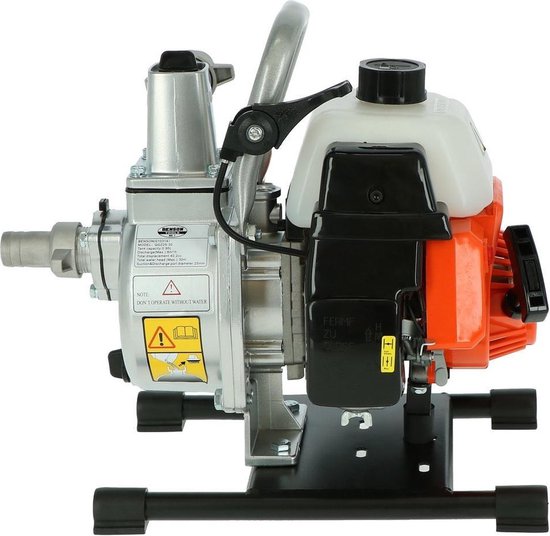 De luchtgekoelde 2-takt motor voorkomt oververhitting, zelfs bij langdurige werkzaamheden. Dankzij het compacte formaat (36,5 × 27 × 37 cm) en het lichte gewicht is de pomp bovendien eenvoudig te verplaatsen en op te bergen.