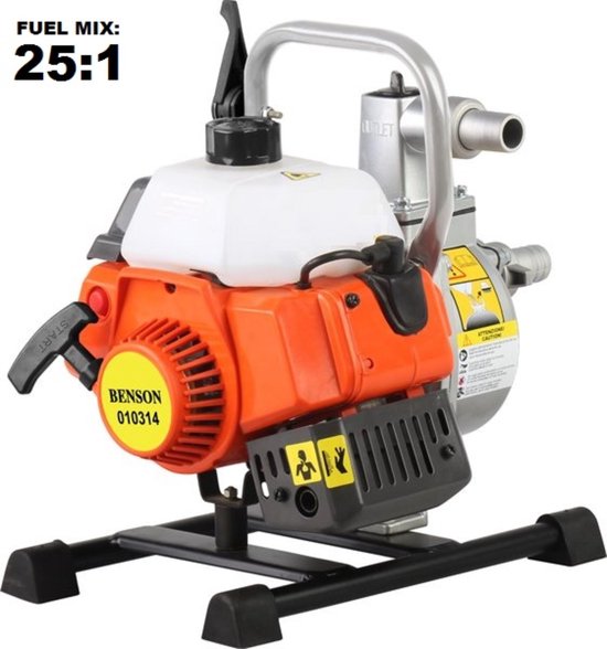 Benson Waterpomp 2-Takt – 1.45 kW – Benzine – Zelfaanzuigend – 13.000 L/U – Luchtgekoelde Motor – Voor Tuin, Zwembad & Irrigatie – Mobiel en Stationair Gebruik