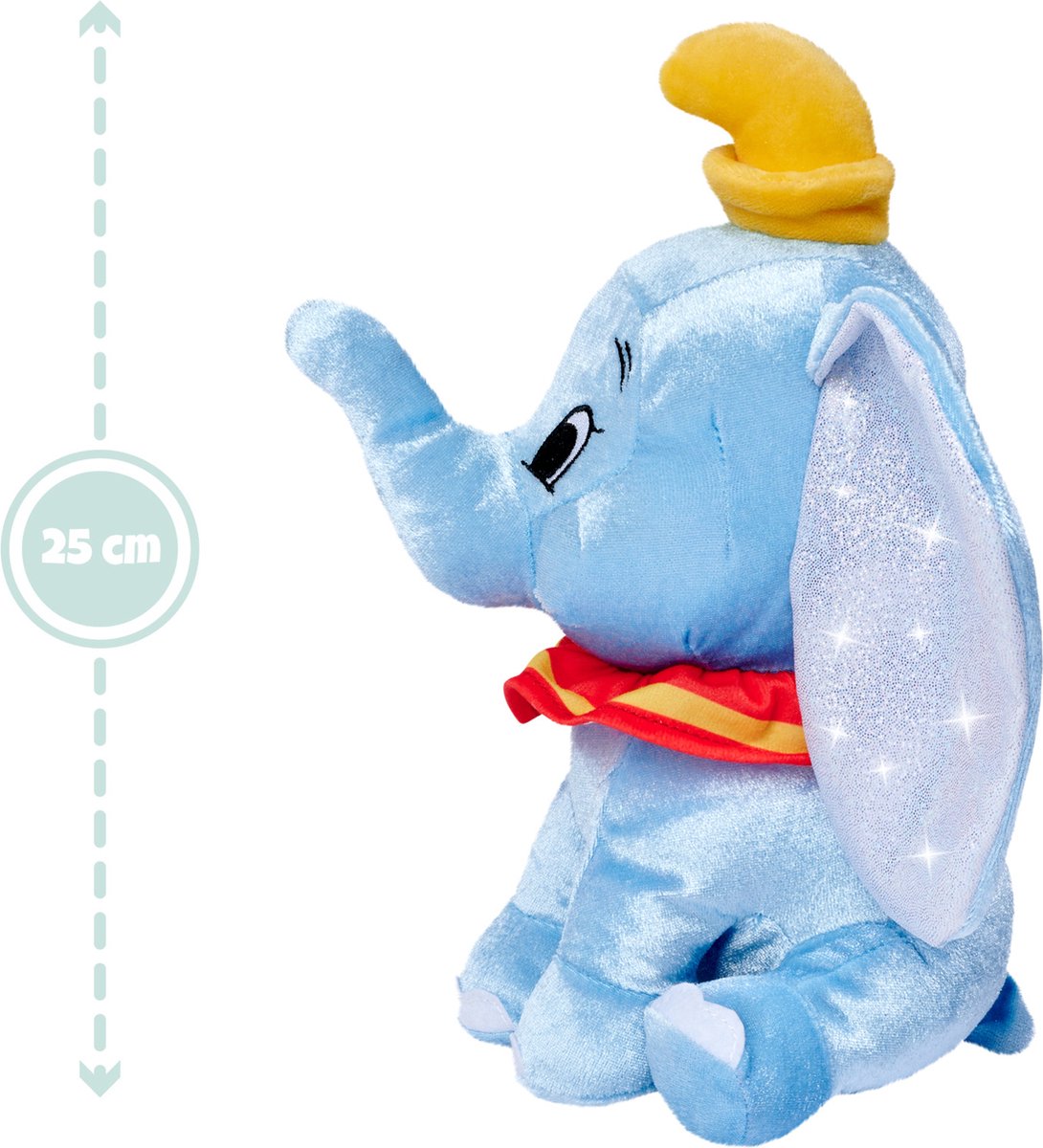Allereerst valt de hoogwaardige afwerking op. De knuffel is gemaakt van extra zacht pluche, waardoor hij prettig aanvoelt en direct uitnodigt om vast te houden. Daarnaast maakt het jubileumdesign deze Dumbo niet alleen geschikt als speelgoed, maar ook als decoratief verzamelitem.