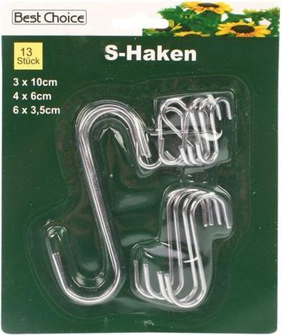 Deze S-haken van roestvrij staal (RVS) zijn een veelzijdige, betrouwbare oplossing voor het ophangen van allerlei objecten — van keukenhulpmiddelen tot gereedschap, kleding, planten of accessoires. Leverbaar op kaart in drie verschillende maten, zodat je steeds de juiste lengte en diameter kunt kiezen voor jouw toepassing.
