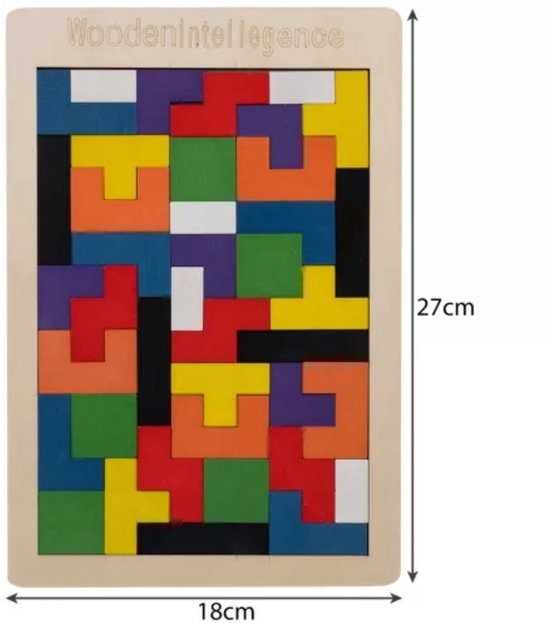 De puzzel is gemaakt van hoogwaardig hout, zorgvuldig afgewerkt en voorzien van gladde randen zodat kinderen veilig kunnen spelen. Dankzij de kleurrijke blokken blijft het spel aantrekkelijk en uitnodigend. Door het compacte formaat en lichte gewicht is de puzzel eenvoudig op te bergen en mee te nemen, ideaal voor gebruik thuis, op school of onderweg.
