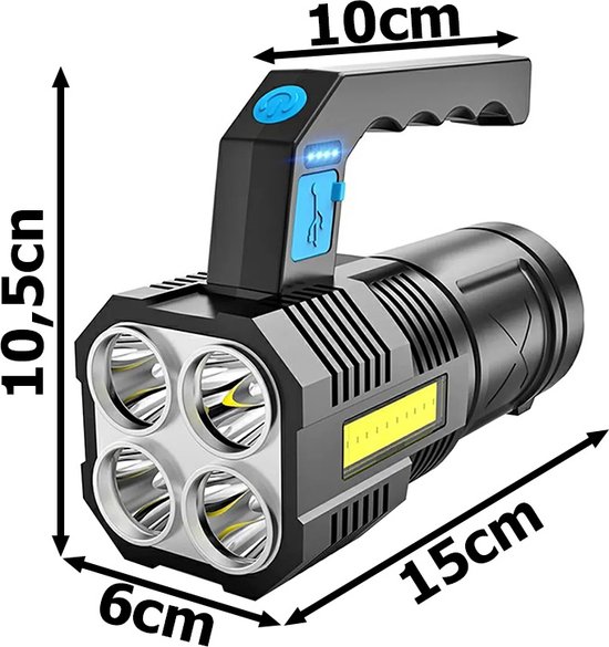 Met deze oplaadbare LED zaklamp ben je altijd verzekerd van een betrouwbare lichtbron, waar en wanneer je maar wilt. Dankzij de moderne COB-LED-technologie produceert deze zaklamp een krachtig en breed licht dat perfect is voor uiteenlopende situaties: van kamperen en wandelen tot klussen in donkere ruimtes of gebruik bij stroomuitval. Het compacte en lichtgewicht ontwerp maakt hem gemakkelijk mee te nemen in je tas, auto of jaszak.