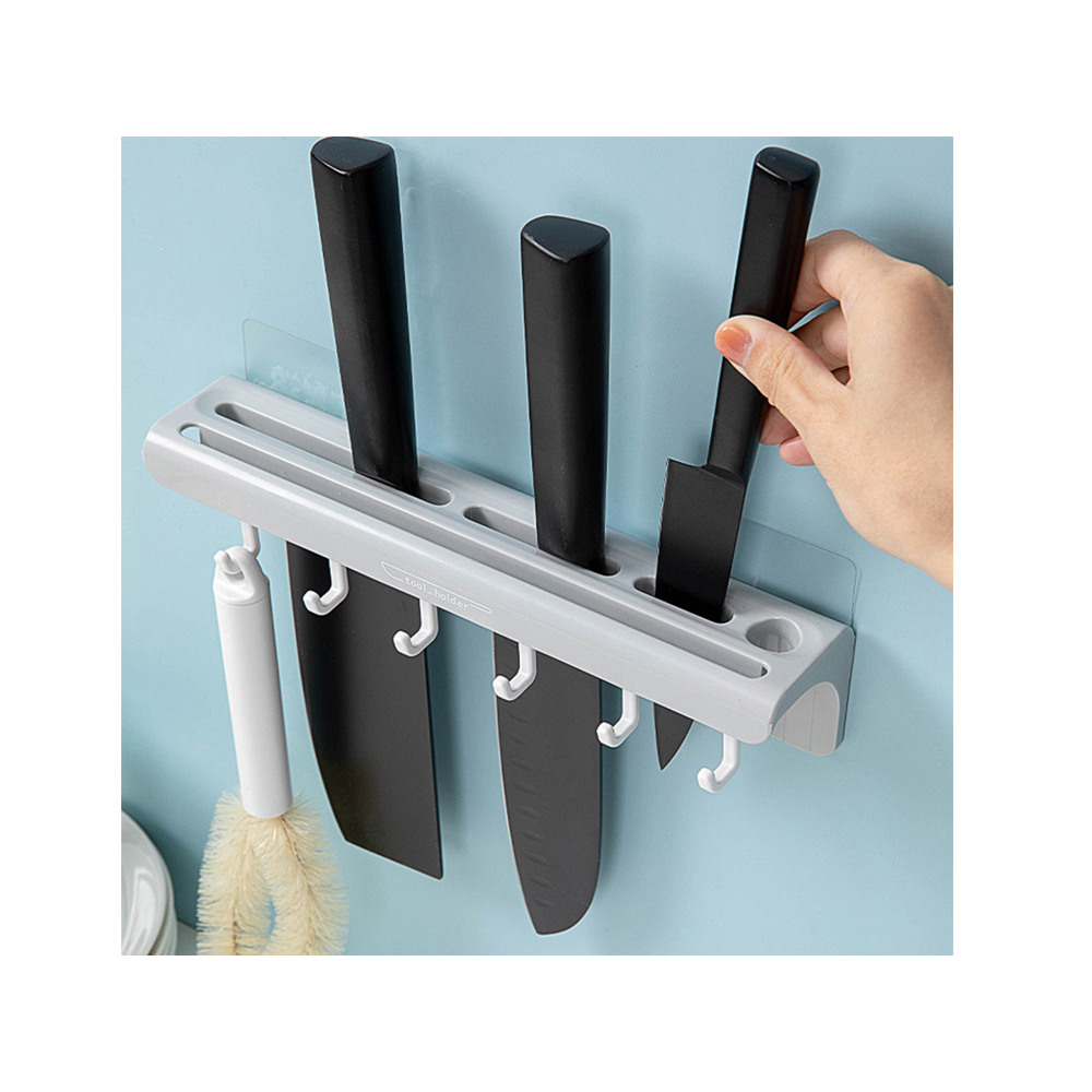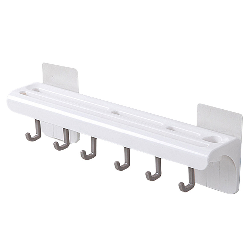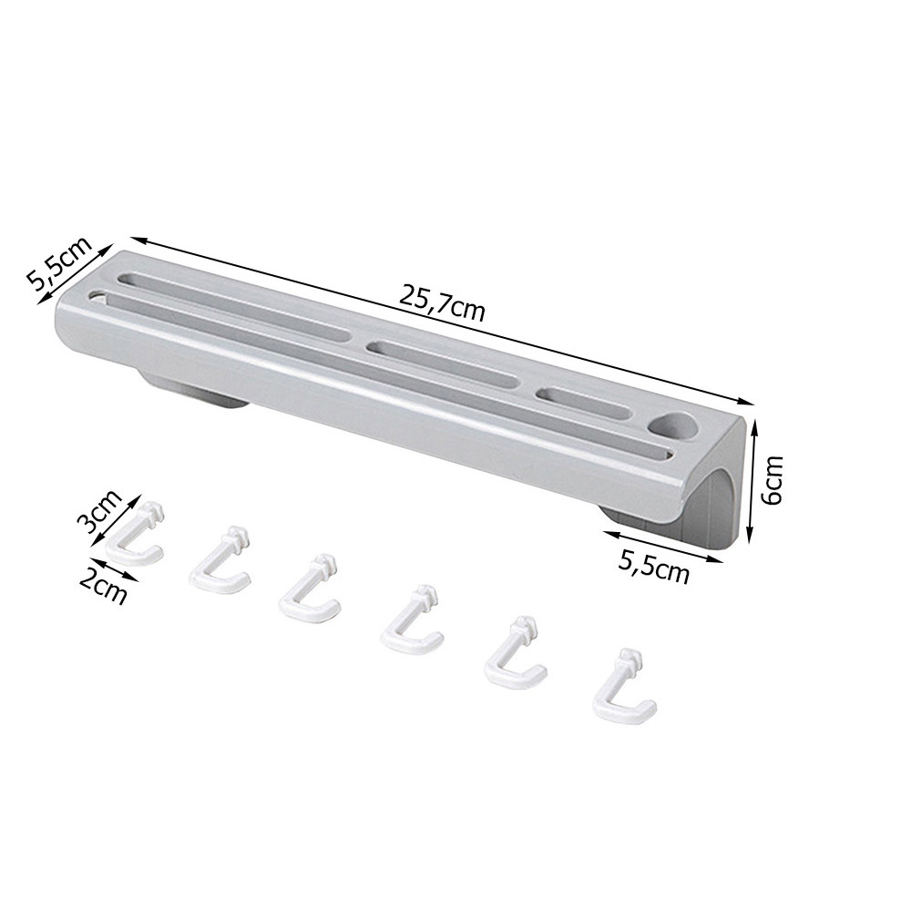 Messenhouder & Keukengerei Houder – Wandrek Met 6 Haken – Ophangbare Keuken Organizer – Kunststof – Wit – 27×5,5×6 cm