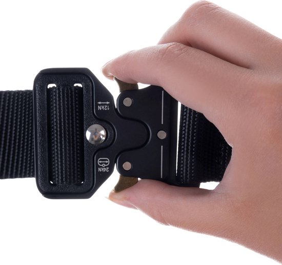 De stevige zink- of legering metalen snelsluiting biedt extra gebruiksgemak, snelle open- en sluiting en één-handbediening. De riem is robuust genoeg om zware uitrusting zoals gereedschap, messengerei of waterflessen te dragen, waardoor hij ideaal is voor bijvoorbeeld survivaltochten, trekking, teamspelletjes of dagelijks outdoorwerk.