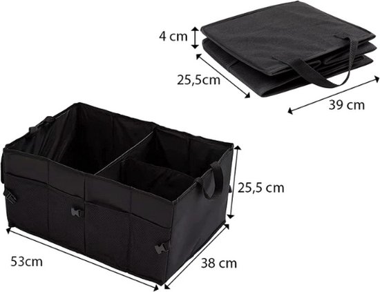 Houd je auto altijd netjes en georganiseerd met deze opvouwbare kofferbak organizer. Met royale afmetingen van 53 × 38 × 25,5 cm heb je volop ruimte voor boodschappen, sportspullen, kampeeruitrusting, gereedschap of noodvoorzieningen. De organizer is stevig en praktisch in gebruik, en wanneer je hem niet nodig hebt klap je hem eenvoudig in. Zo profiteer je van maximale opbergruimte én slim ruimtebesparen.jk opbergen van uw spullen tijdens elke autorit.